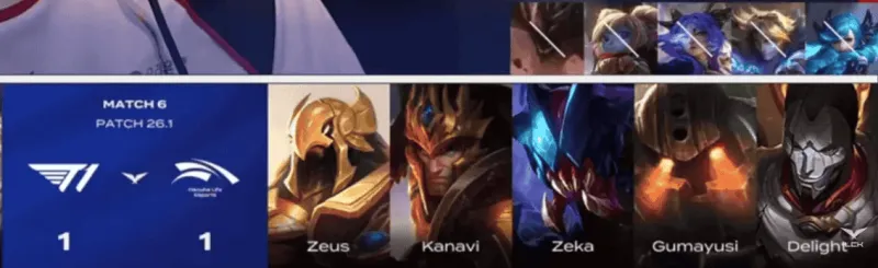 HLE选用:Zeus雷克塞、Kanavi皇子、Zeka沙皇、Gumayusi烬、Delight泰坦